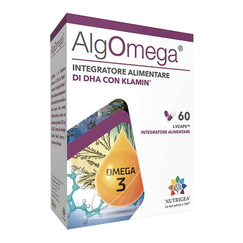 AlgOmega 3Descrizione Integratore alimentare di DHA con Klamin, estratto da microalghe Klamath. Il DHA contribuisce al mantenimento della normale funzione cerebrale e della capacità visiva normale (l'effetto benefico si ottiene con l'assunzione giornaliera di 250 mg di DHA). L'estratto da microalghe Klamath favorisce il normale tono muscolare. Senza glutine. Ingredienti Life's DHA (olio derivato dalla microalga Schizochytrium sp., ricco in DHA), olio di girasole, Klamin estratto secco da microalghe Klamath (Aphanizomenon flos aquae), capsula vegetale (idrossipropilmetilcellulosa; colorante: concentrato di carota); addensante: ...